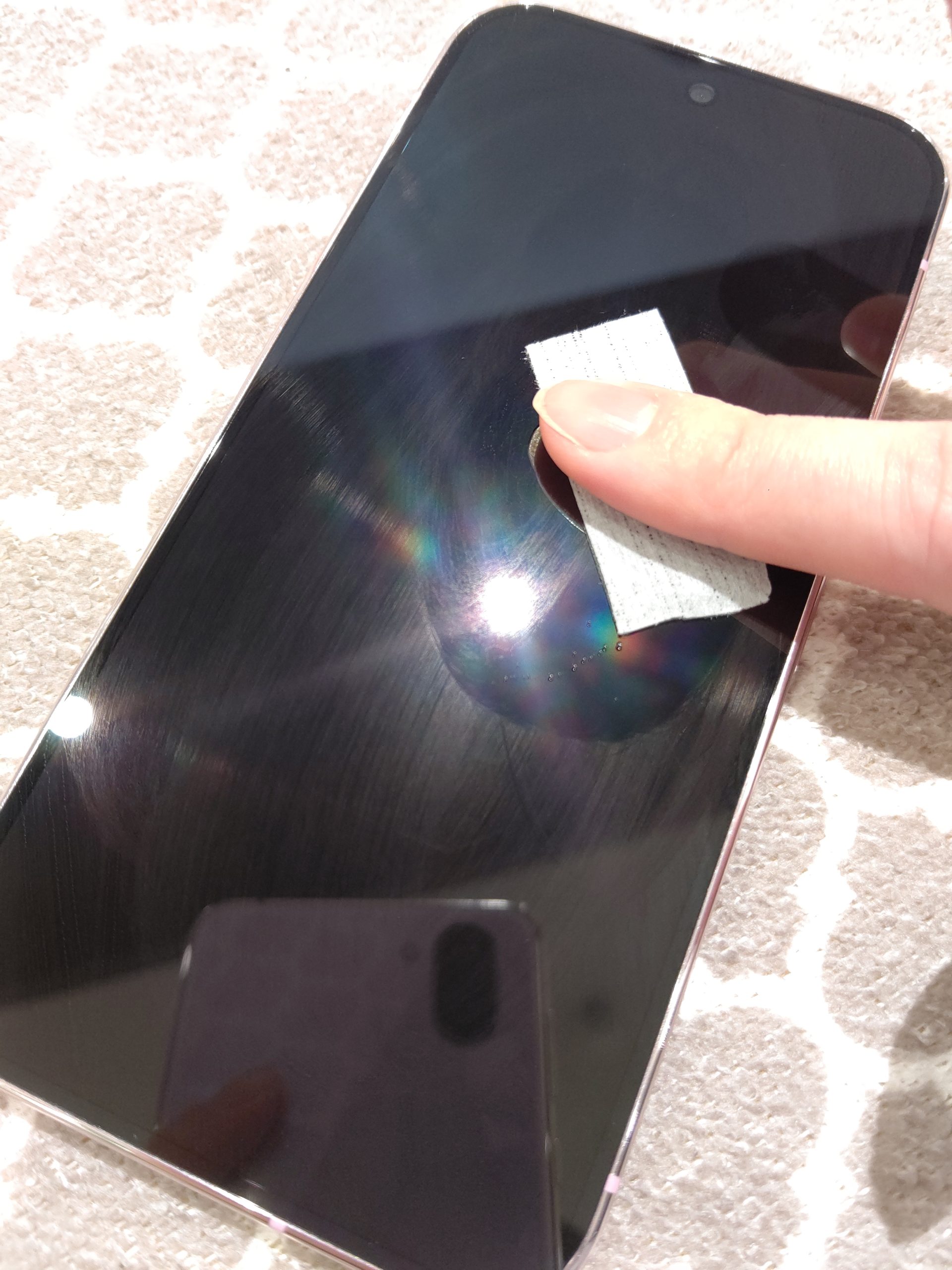 画面に残った余分なコーティング剤を拭き取ります。