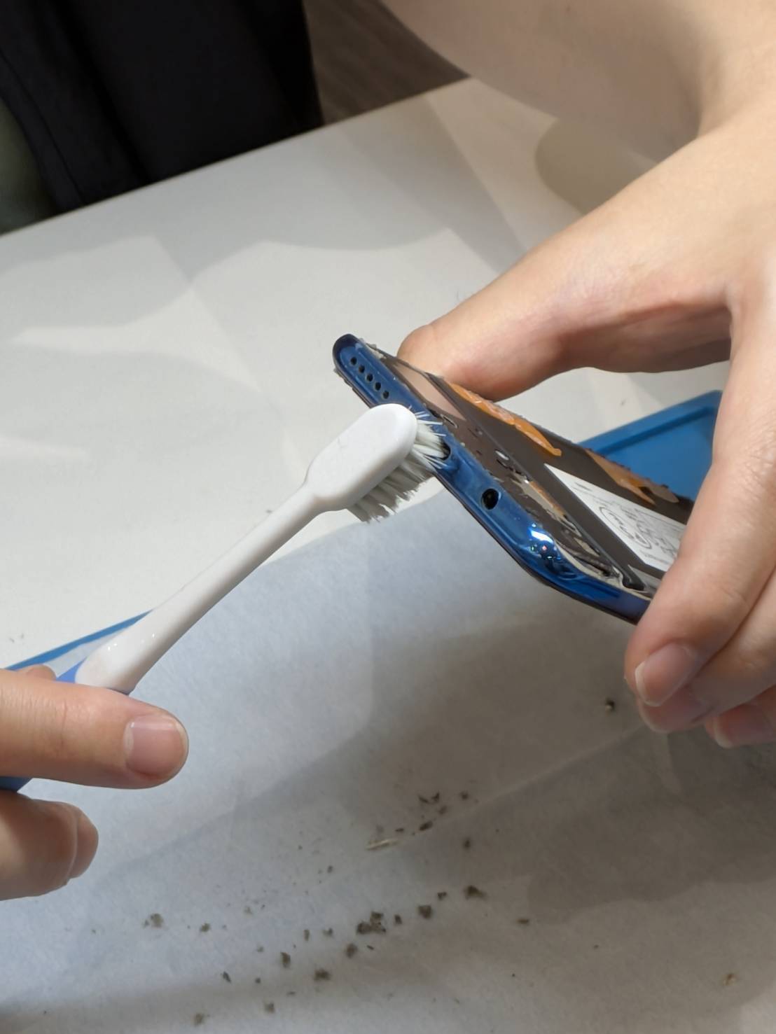 専用の工具を使い粘着テープを剥がして背面パネルを外していきます。