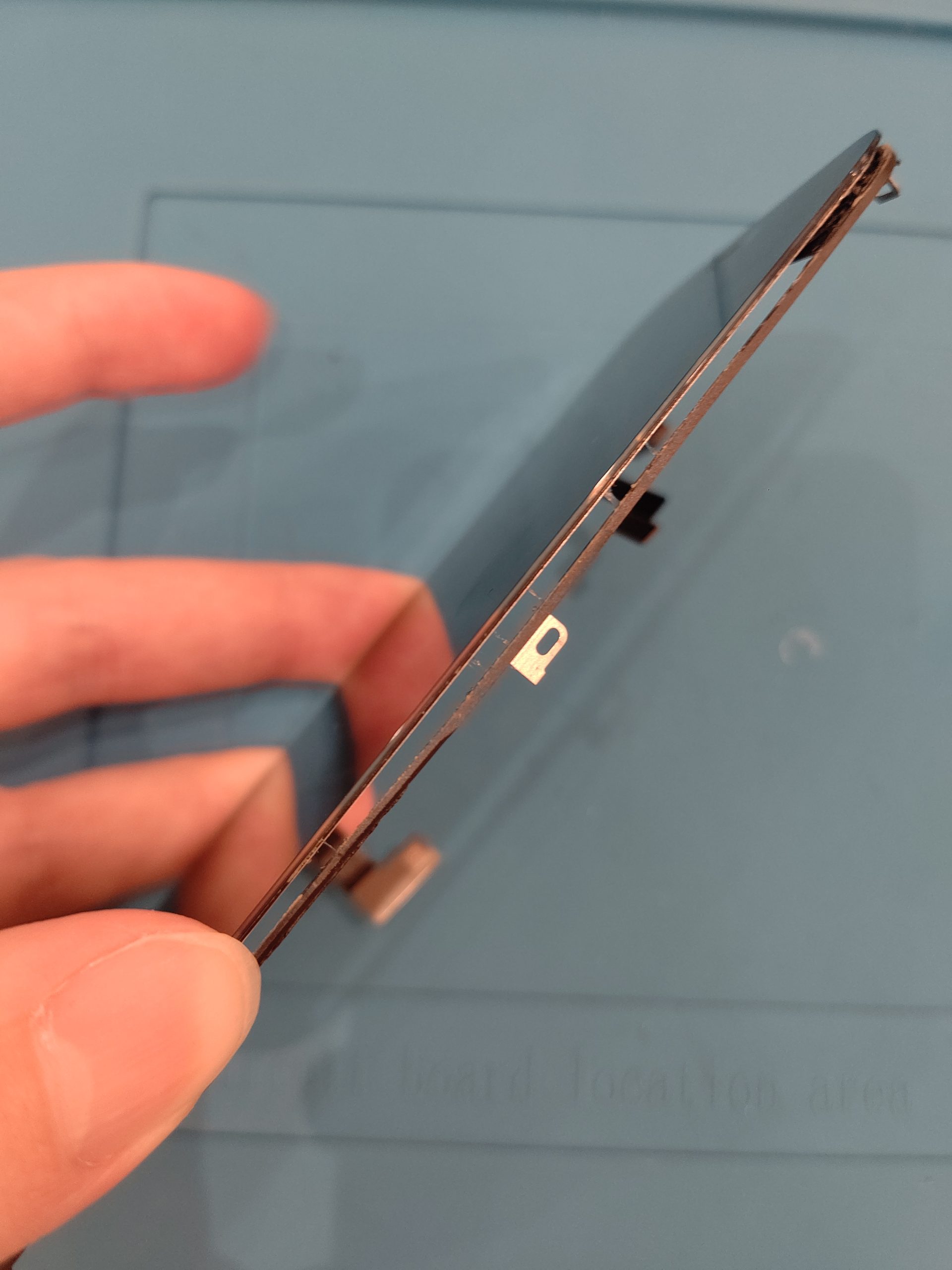 離した画面を確認してみると、液晶面とタッチパネル部分が剥離している状態。