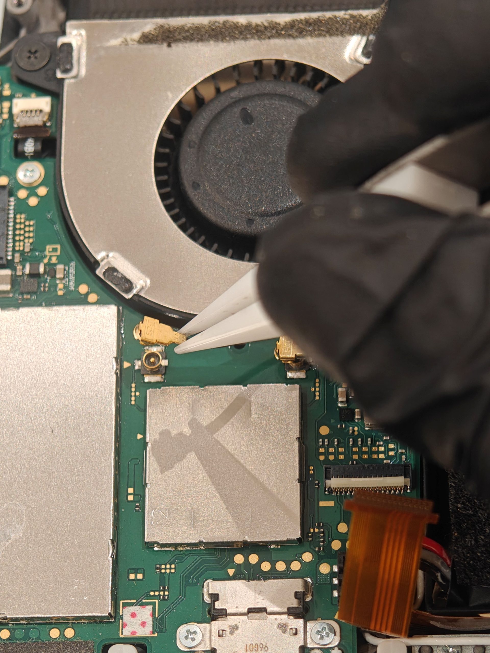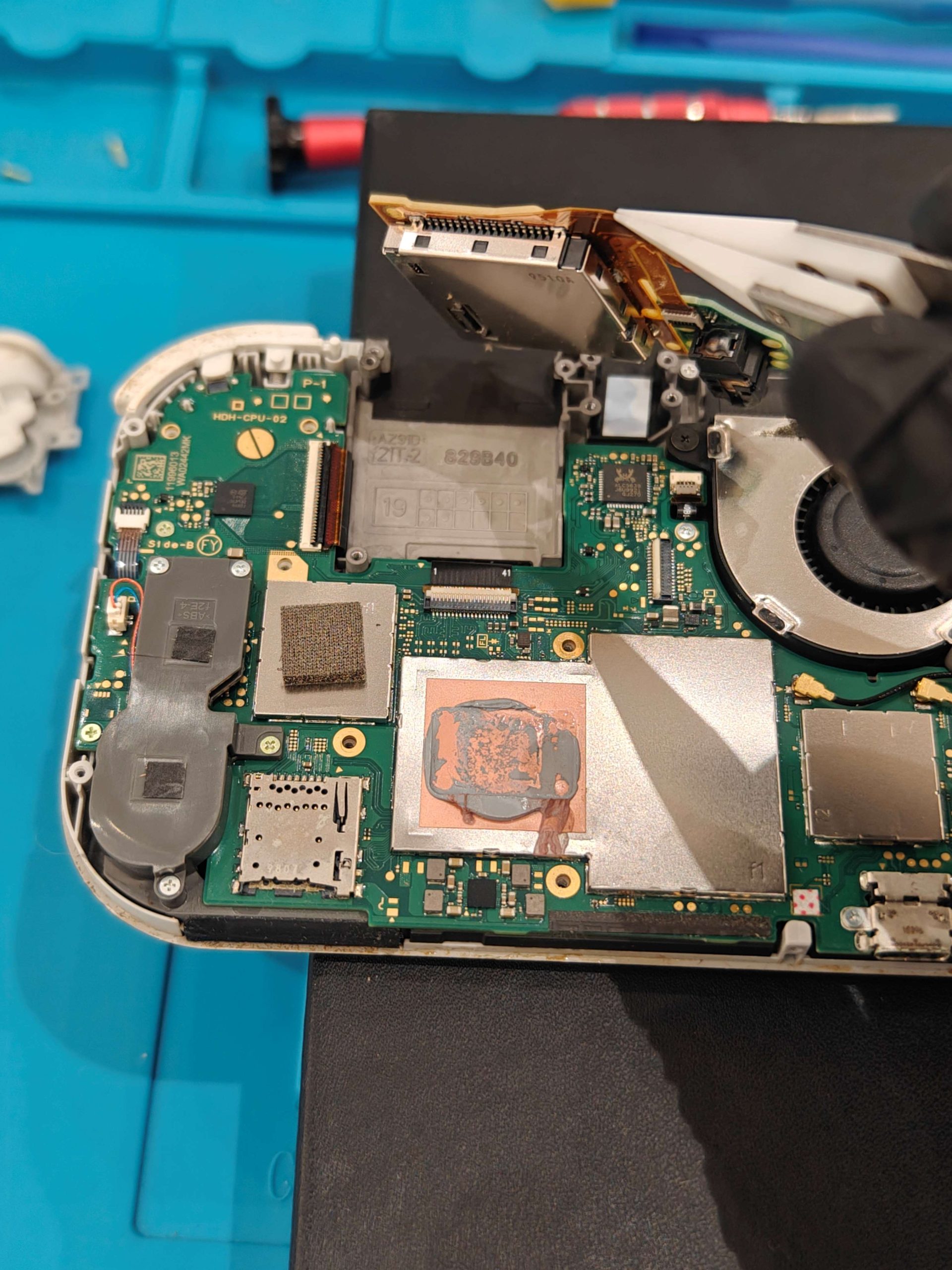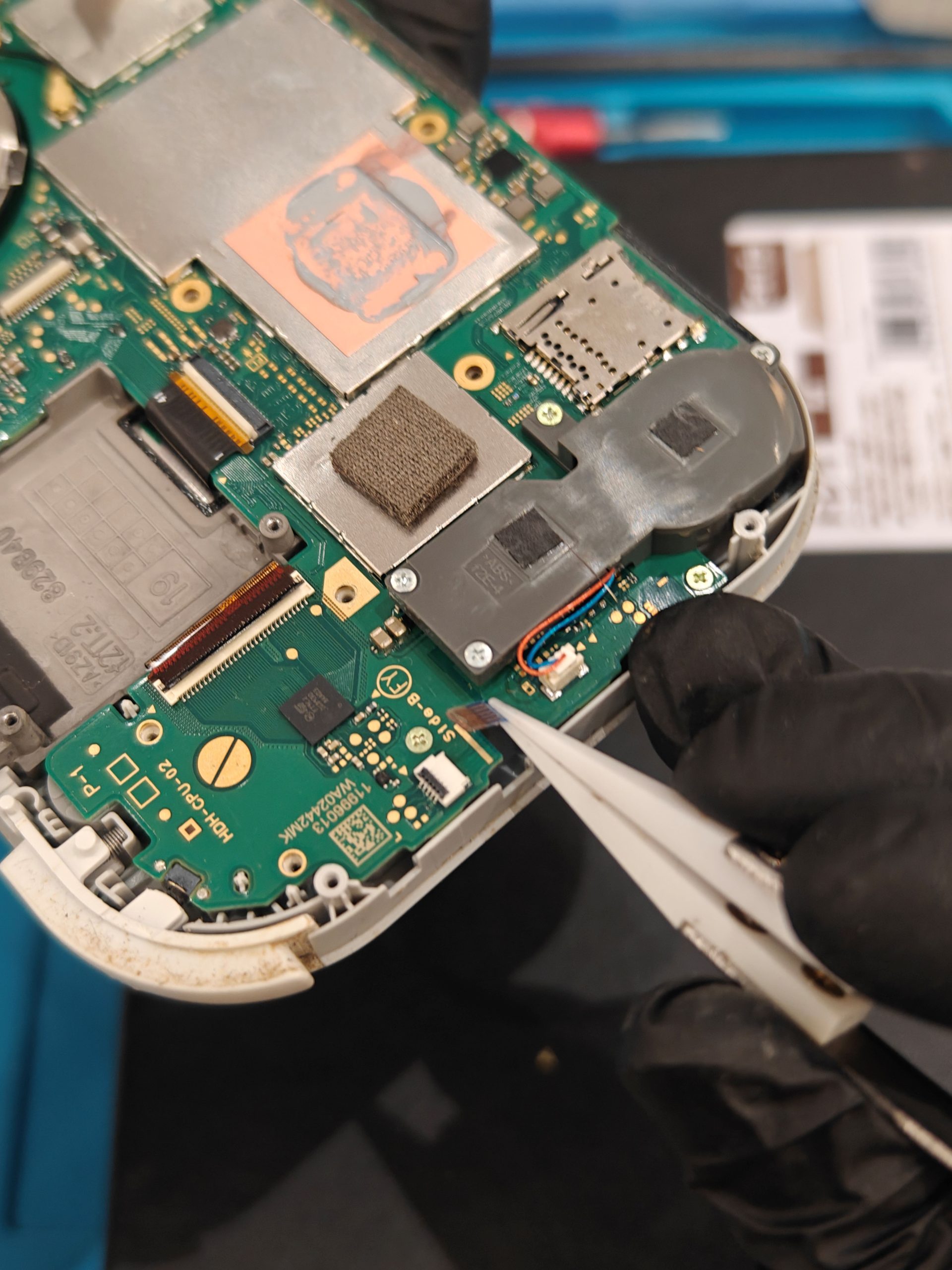 電源コネクタを抜いてからヒートシンク、ゲームカードスロットを取り外します。