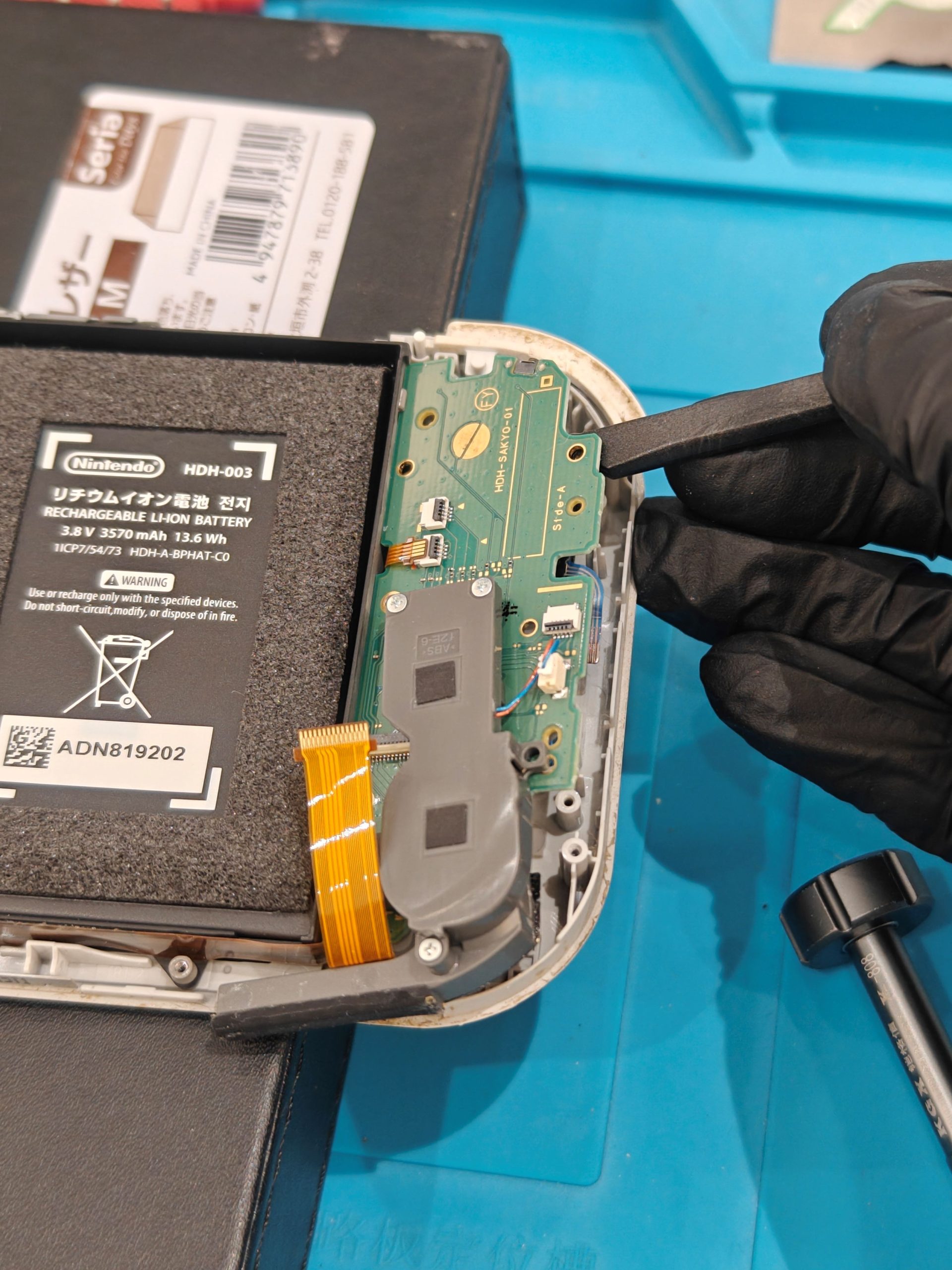 左スティックのコネクタと液晶のケーブル、ネジを数本外したら基板を取り外します。