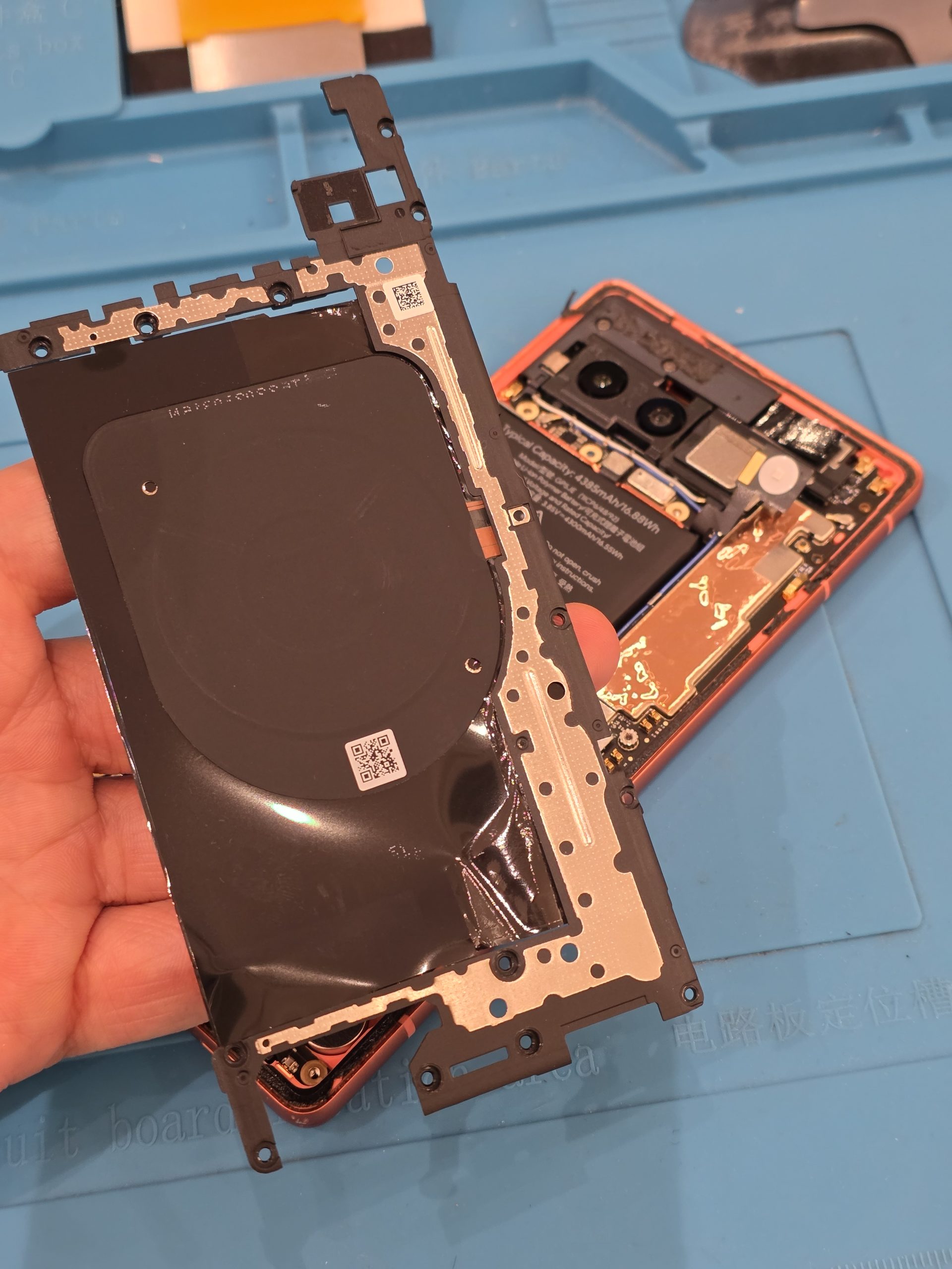 冷却シート・ワイヤレス充電コイルのパーツを外します。