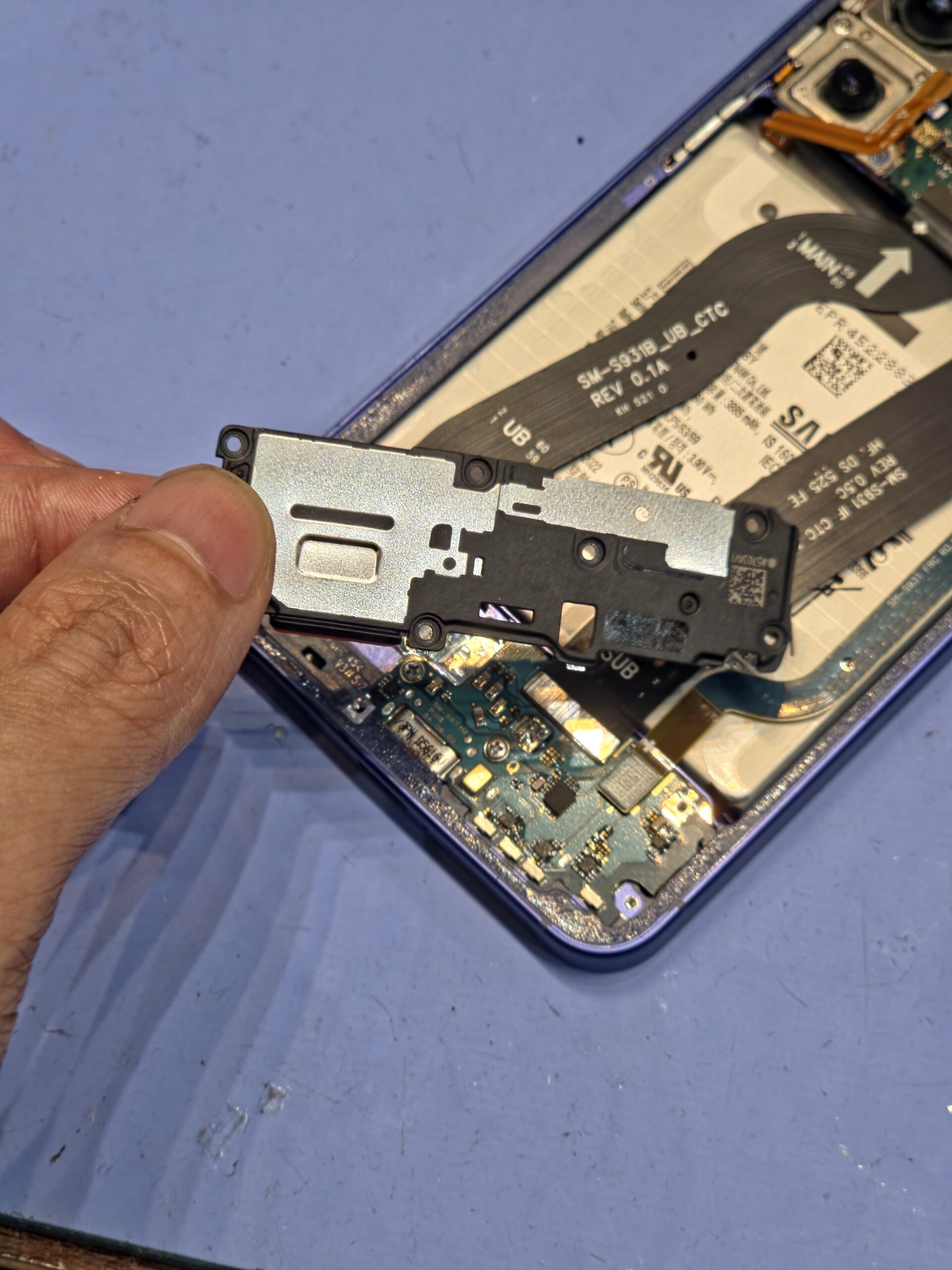 Galaxyスマホの修理は背面側から分解していきます。